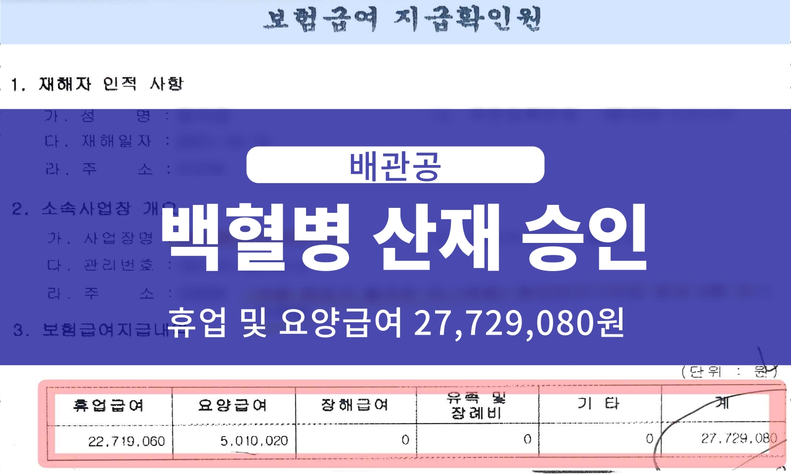 배관공의 백혈병 산재 승인 사례